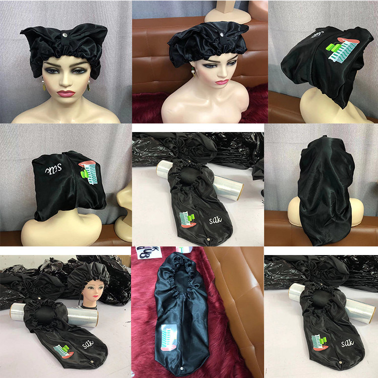 Pourrait le LOGO adapté aux besoins du client sur le capot, évaluation basée dessus par chapeau de sommeil de nuit adapté aux besoins du client par couleur de cheveux bouclés avec des capots de satin de BOUTON Soin de beauté et chapeaux d'outil de repos de salon, capots faits sur commande